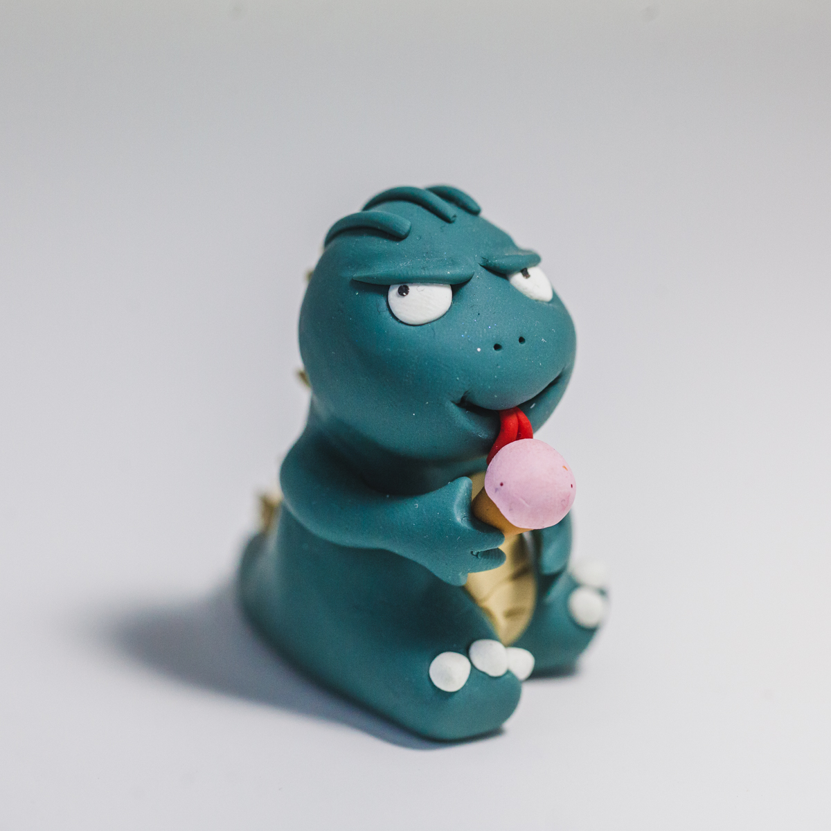 Material: Polymer Clay Dimension: 2.5 x 2 x 2.5 inches Hand made figure coming with an ice cream pint package.